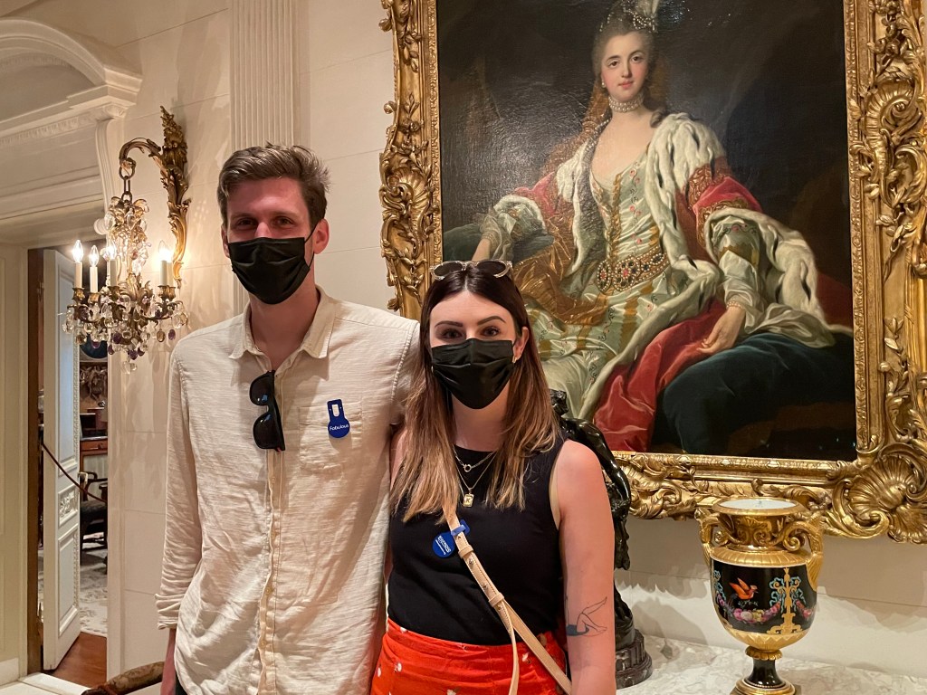 Daughter Kate and boyfriend Jay at Hillwood museum during the pandemic.