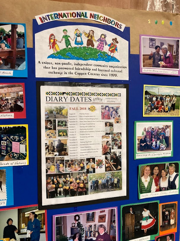 gatherings. These meetings help adults from many countries get to know neighbors from the local area and beyond. During the school year, International Neighbors meets at 10:00 am Thursdays at the Portage Lake United Church, across from MTU’s campus. All are welcome to attend as the group learns about different cultures and cuisines, experiences outdoor activities, and much more.
