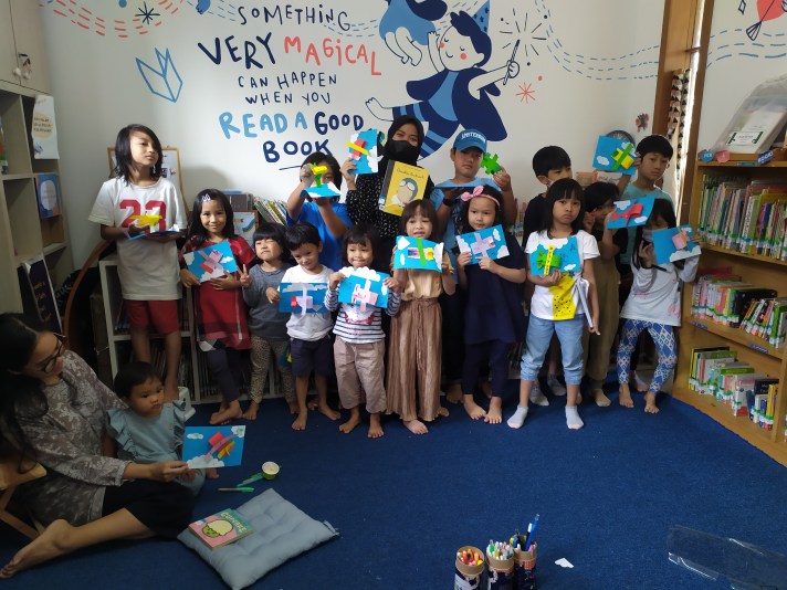 Hi, my name is Cindy. I joined the Elaine Bacon Literacy Program in February of 2023. I knew about this program from Puti who is my colleague and director of the children’s library. The children’s library in Bandung, West Java, Indonesia, named “Pustakalana Children’s Library” is a not-for-profit community library. Many volunteers contribute to keep Pustakalana active and to survive. Not only does it provide children’s books, it also arranges many activities for children and adults. For example, it offers a weekly storytime and craft activities as well as a silent book club for adults once a month.
