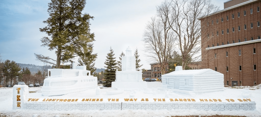 Experience the magic of Michigan Tech’s Winter Carnival by visiting the impressive snow and ice sculptures around campus. A perfect opportunity to enjoy local creativity and winter fun.