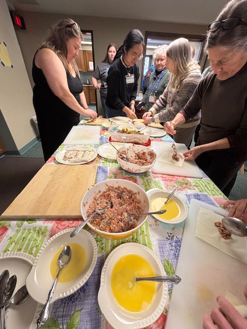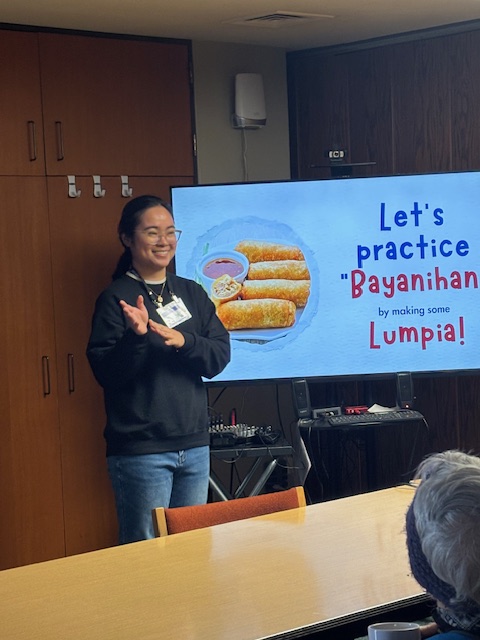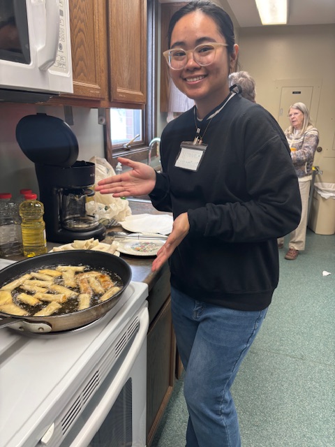During the session, Kim not only taught IN community how to prepare both meat and vegetarian versions of Lumpia (read: loom-pyah), but she also shared insights about her home country. Through her engaging talk and an informative video, participants learned about the Philippines’ rich cultural heritage, including its diverse languages—Spanish, English, and Kim’s native dialect—and fascinating traditions.