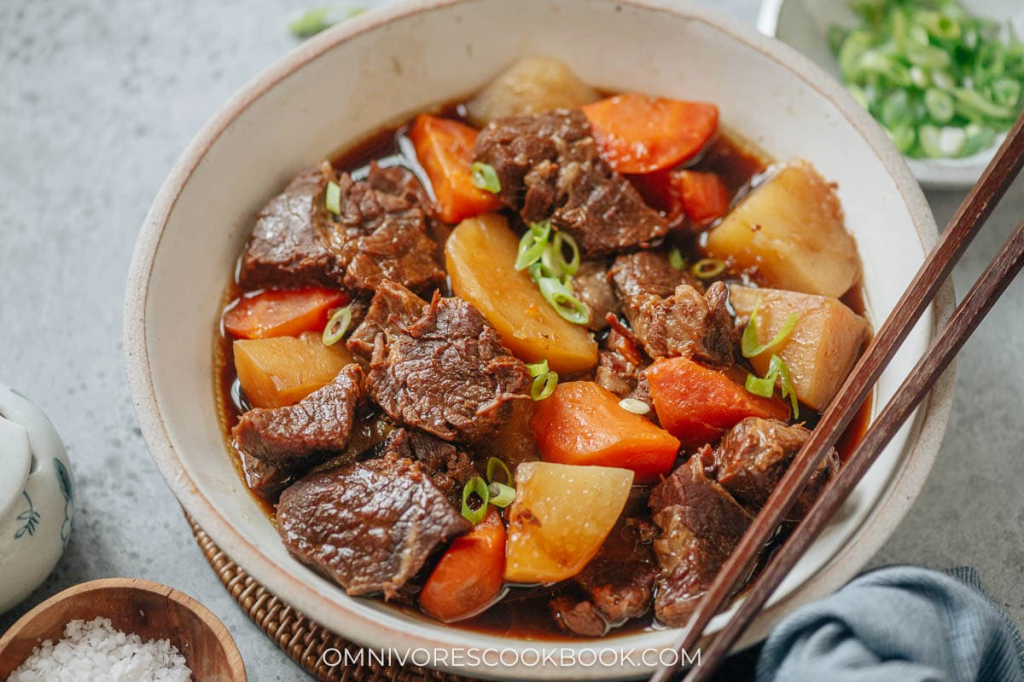 While writing this recipe, Dongping learned the names of food ingredients in English as well as how procedures are organized in English. He surprised me one day when he gave me a dish of his beef stew wrapped up like a present! It was so delicious!