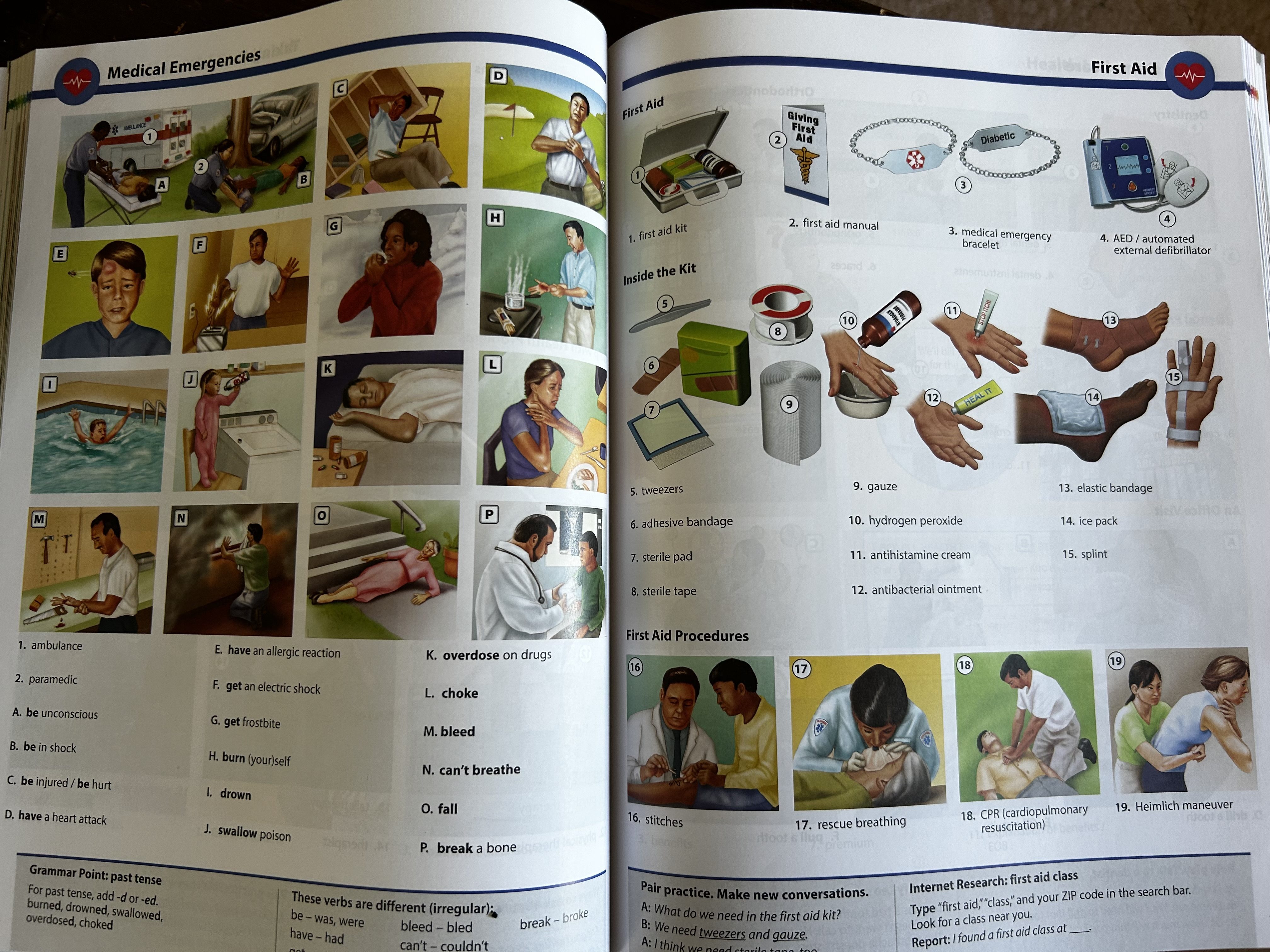 For example, the “Medical Emergencies” section helps you learn words and images related to discussing health issues. Another section provides vocabulary you can use when talking to a mechanic about your car. These dictionaries are a great way to build your vocabulary and confidence in real-life conversations—check one out today!