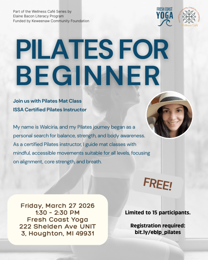 This program is part of the Wellness Café Series organized by the Elaine Bacon Literacy Program, with support from the Keweenaw Community Foundation.
